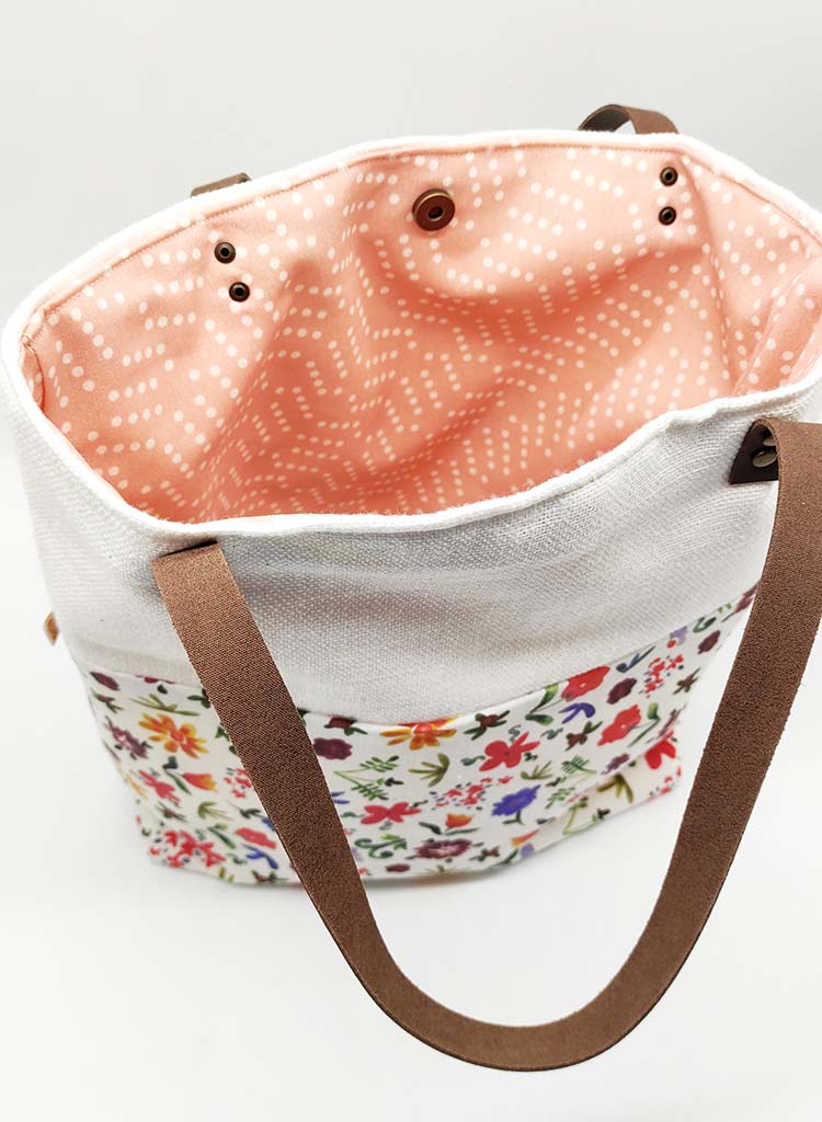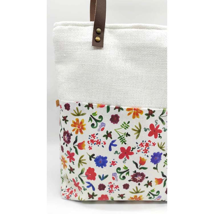 από βαμβακερό ύφασμα εσωτερικά και εξωτερικά και επενδυμένη με δερμάτινα χερούλια.