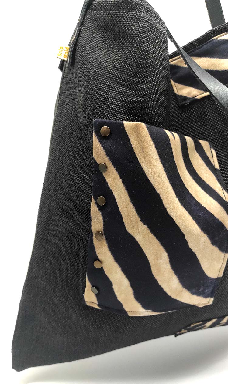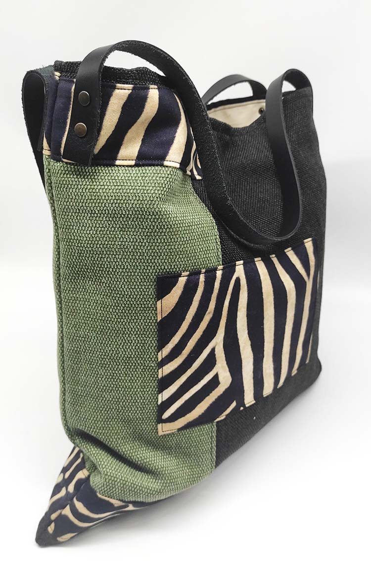 animal print από βαμβάκι, μαύρη στόφα και χακί χοντρό καραβόπανο.
