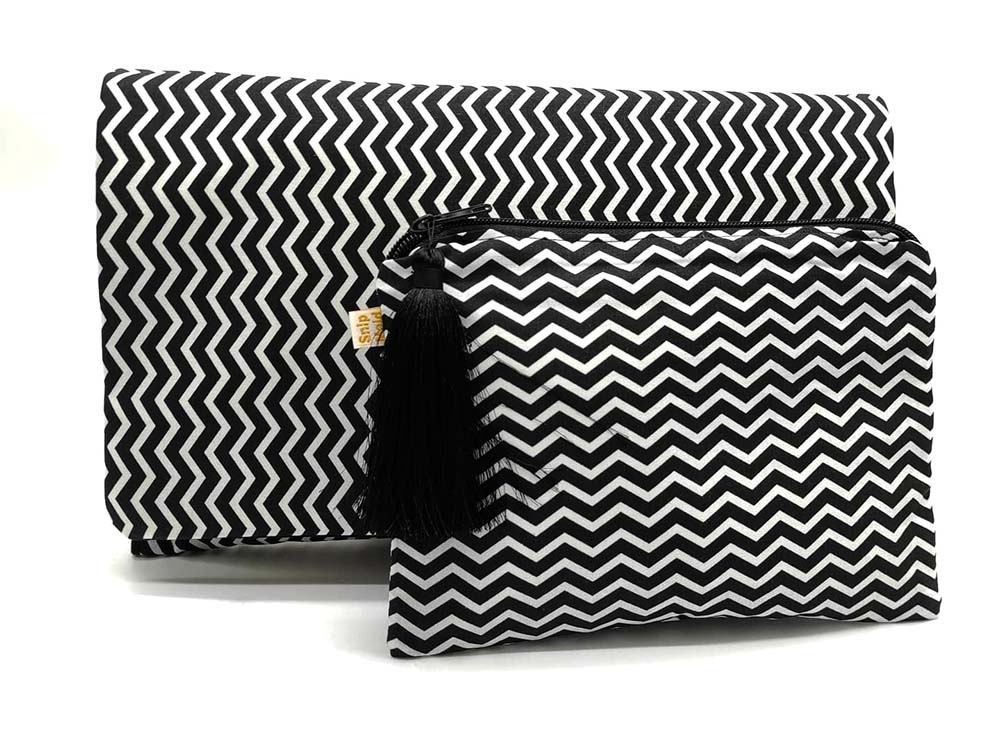 για τις βραδυνές σας εξορμήσεις, από εξαιρετικής ποιότητας βαμβακερό ύφασμα και σετ το νεσεσέρ για τα μικρόαντικείμενα εσωτερικά της τσάντας.