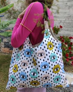 αρκετά μεγάλη και ανθεκτική, από βαμβακερό ύφασμα και εσωτερική επένδυση από καραβόπανο,